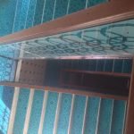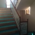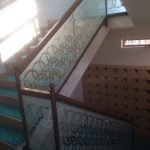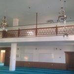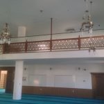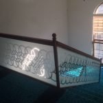 Ayrıca cami içerisinde var olan ferforje merdiven korkuluğundaki desenler sökülerek, yerlerine yine kumlu desenli cam takılmıştır.