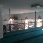 Ahi Elvan Cami üst katında bayan cemaatin ön tarafına kumlu desenli cam seperatör yapılmıştır.